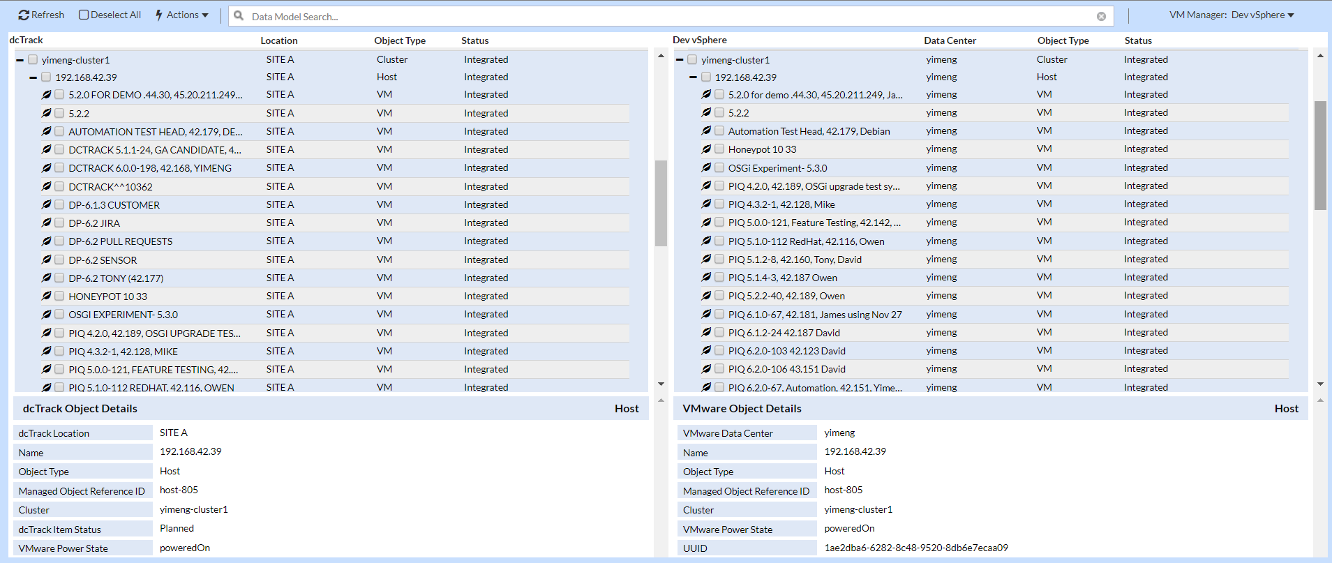 dcTrack 6.1 helps users identify and track server resources supporting virtual machines. It enables the discovery of supported assets in your virtualized environment by dcTrack, including clusters, hosts, and VMs.