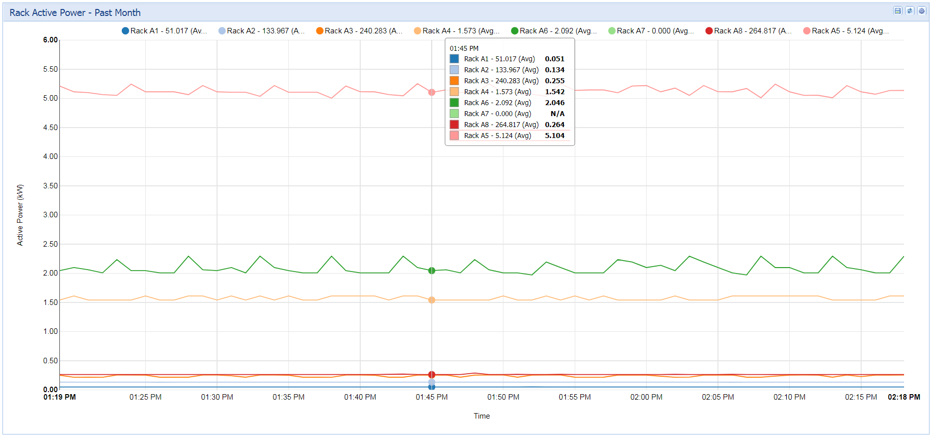 The dashboards have been updated and refreshed in Power IQ 6.0 for an elegant, modern design that implements the same HTML5 charting library as dcTrack. The new charts enable you to interact with your data in ways that unlock deeper insights.