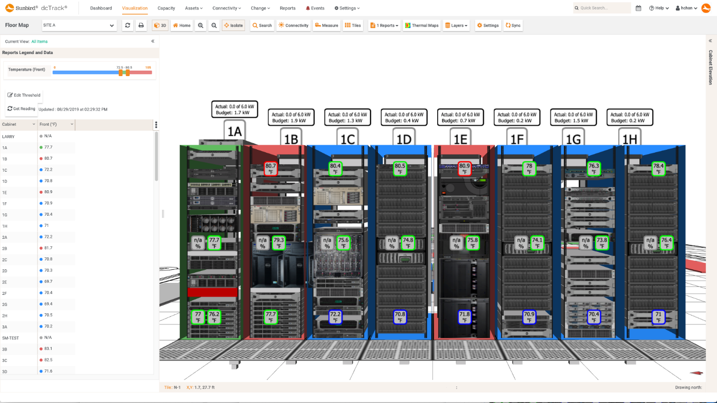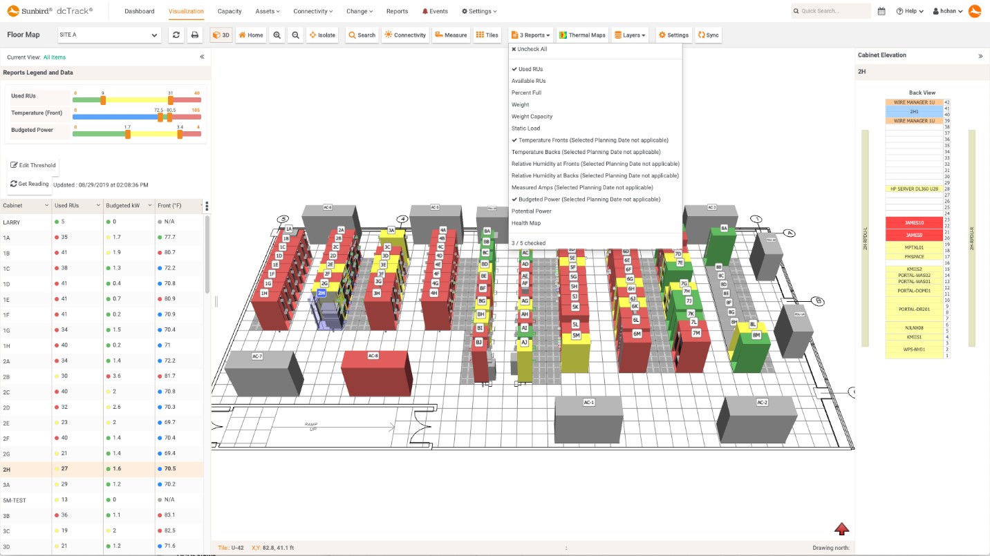 If a picture is worth 1,000 words, then the value of rich 3D visualizations of your data center is enormous. With DCIM software that provides high-fidelity visuals of the data center, data center professionals must no longer waste time making physical trips to the data center. In one glance, you can view cabinet elevations and see where and how devices are placed and connected or analyze power, temperature, and humidity sensor readings.